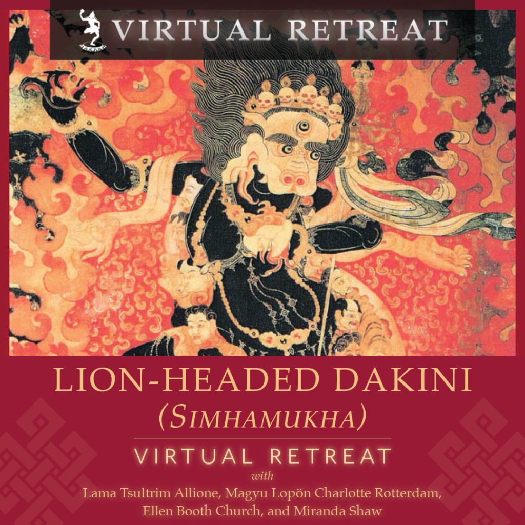 - Receive the transmission and teachings on the Lion-Headed Dakini (Simhamukha) practice.
